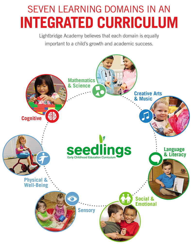 The greatest minds in early childhood education such as Fredrich Fröbel, Howard Gardner, Loris Malaguzzi, Maria Montessori and Jean Piaget serve as the inspiration for our Seedlings Early Childhood Education Curriculum. Their groundbreaking work is the foundation of ours. Lightbridge Academy has brought these key learnings together in our curriculum to impact the "whole" child in a multitude of ways. By embracing every moment as another opportunity to learn, all developmental areas are met, unlocking every child's potential including academic success.